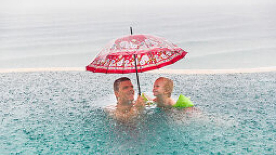 Styrtregn slik vi vanligvis opplever det i Sponvika. I morgen forventes det vann til midt på lårene.